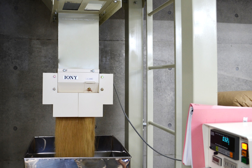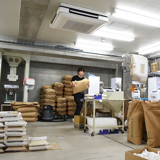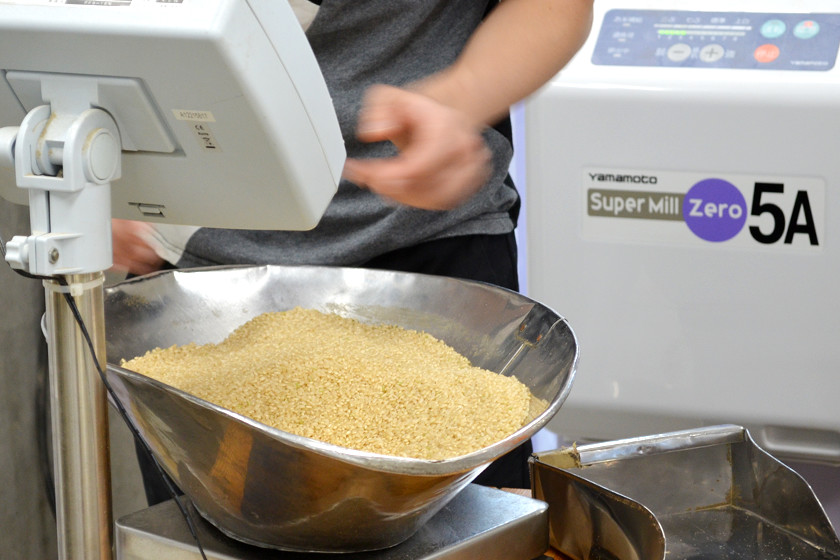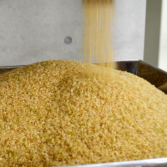 精米機で精米を行います。有機栽培米に関しては、この段階でも有機栽培米専用の精米機を用意し、他のお米と決して混ざらないよう、徹底しています。