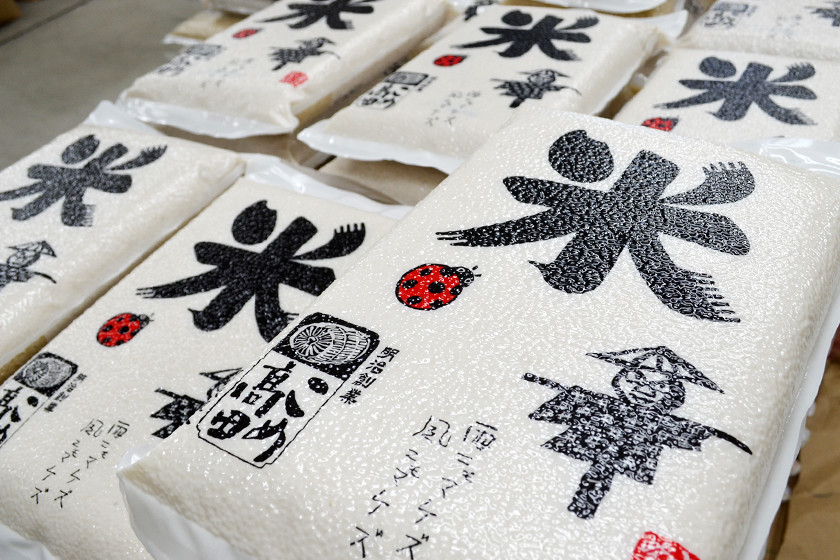 それぞれの商品袋にお米を梱包します。オプションにて真空パックをお選びいただいた場合は、専用の真空パック袋に梱包し、配送いたします。
